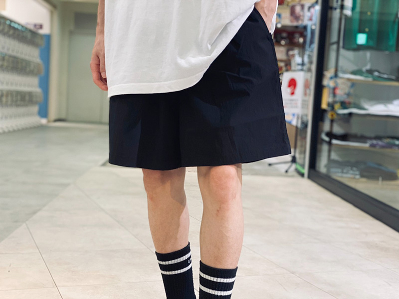 自然なシワ感を出すワッシャー加工を施したコットンナイロンストレッチ生地を使用したショートパンツ。ゆったりとしたバギーシルエットにウェストゴム仕様でリラックスして着用できる一本。