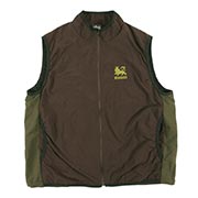 胸元にLIONロゴを刺繍したマイクロリップストップ生地のナイロンベスト。