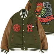 バックにLIONとSOUND SYSTEM、グラフィティロゴをサガラや刺繍で落とし込んだ存在感抜群の一着。フロントにサークルロゴ、クラウンとジョイントをあしらったKロゴをサガラ刺繍でオン。ボディとグラフィックスのカラーリングもこだわりました。中綿キルティング仕様でインナーのセレクトでロングシーズン大活躍するユニセックスアイテムです。