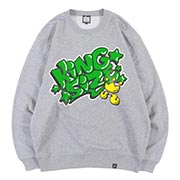 フロントにポップなキングサイズロゴをプリントした裏パイルクルーネック!!
