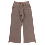 裾フレアでキレイめなシルエットが特徴的な一本。裾部分の紐でシルエット調節可能です。ピグメント加工を施したヴィンテージな風合いが魅力。ウェストゴム仕様でリラックスして着用できるアイテム。裏面は起毛感のあるフリースがウォーム感ある仕上がりで秋冬シーズンに大活躍するユニセックスアイテムです。同素材を使用したジップフードとのセットアップコーデもおすすめです。