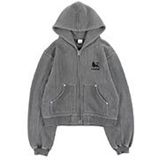 綿100%のワッフル生地とマイクロフリースを圧着した素材を使用したヘビーウェイトのジップフード。