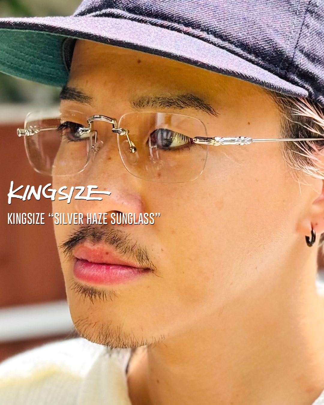 リムレス=フチなしフレームデザインで自然な印象でかけられるトレンドのサングラス。