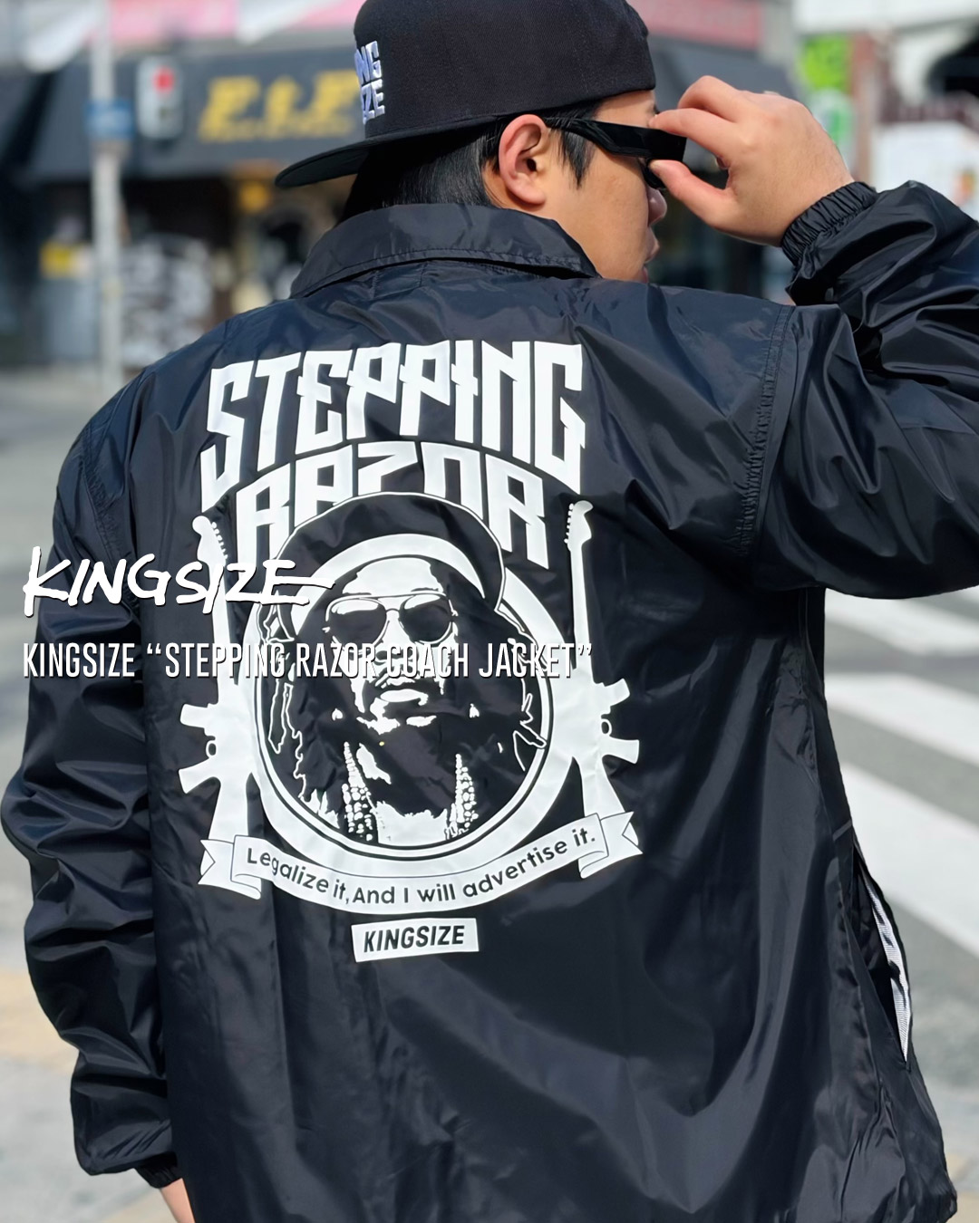 STEPPING RAZORの呼び名を持つレジェンドのグラフィックスをオンしたナイロンコーチジャケット。