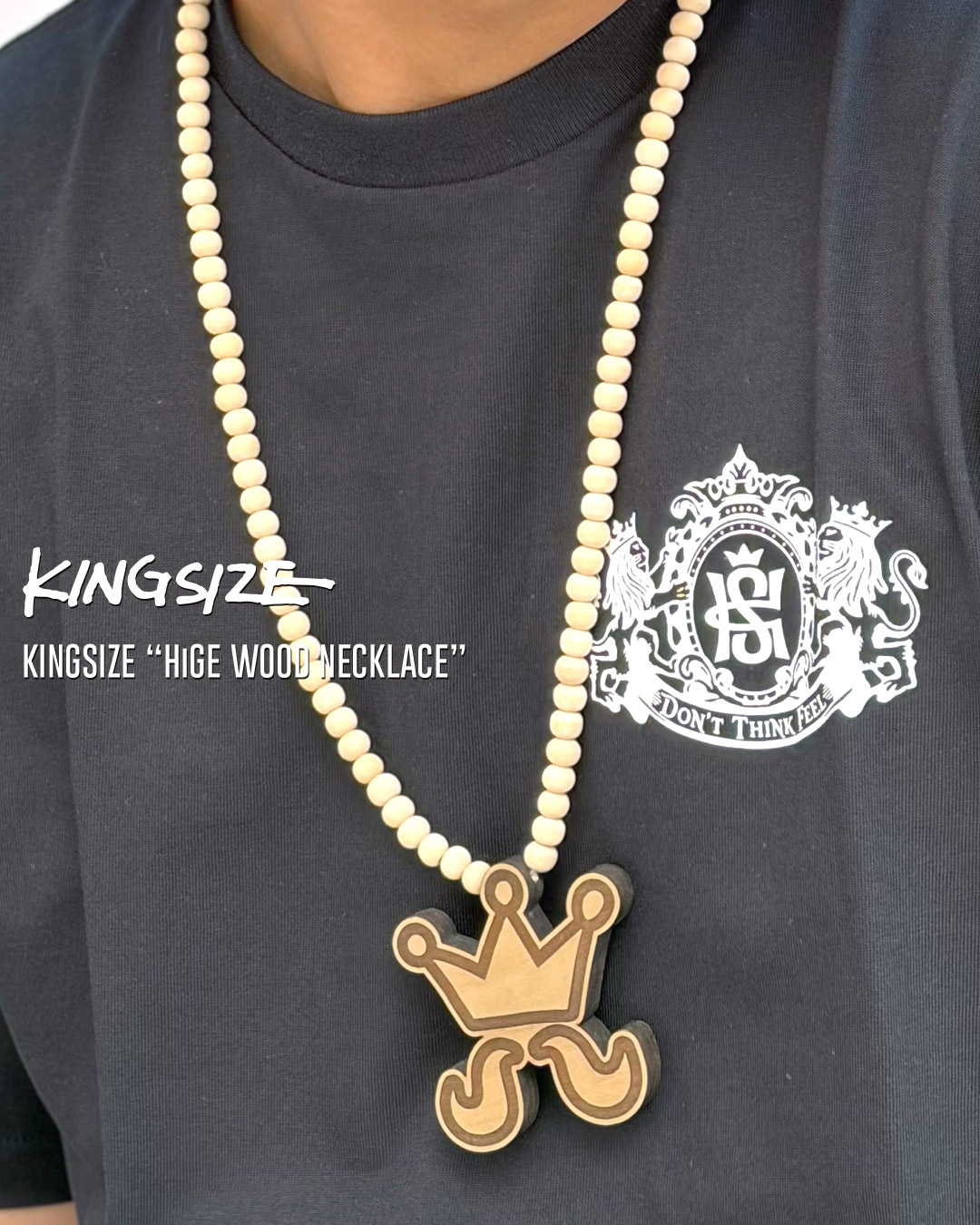 ブランドのアイコンである「HiGE」ロゴを大胆に型取った、存在感抜群のウッドネックレス。トップ素材には、きめ細かく、なめらかな質感が特徴の「朴ノ木(ホオノキ)」を採用し、使い込むほどに深みを増すウッドならではの質感が特徴です。大ぶりのトップに立体的なウッドビーズとの組み合わせが、首元に確かな存在感を放ちます。モードなストリート感を漂わせるブラックカラーにレーザー刻印による精巧なロゴデザインが、立体的な陰影を演出。大ぶりな見た目ながら、ウッド素材のため非常に軽量でオールシーズン快適に愛用いただけます。プレゼントにもオススメです。