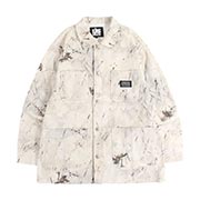 春らしい色合いの総柄プリントが特徴的なカバーオールジャケット。定番のカバーオールを、表情豊かな総柄プリントでアップデートした一着。タフでハリのあるコットンツイルを採用した着込むむほどに体に馴染むアイテム。フロントの4ポケットやネオバーボタンなど、細部にまでこだわりのディティール。左胸のブランドタグが程よいアクセントに。アーティスティックな総柄が目を惹く、ユニセックスでオススメのアイテム。同素材のワイドパンツとのセットアップコーデもおすすめです。