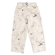 春らしい色合いの総柄プリントに程よいルーズシルエットが特徴的なワイドパンツ。タフでハリのあるコットンツイルを採用した穿き込むほどに体に馴染むアイテム。腿周りにたっぷりとゆとりを持たせたルーズフィット。裾にかけての落ち感が美しく、スニーカーとの相性も抜群です。アーティスティックな総柄が目を惹く、大人のルーズスタイルのユニセックスでオススメのアイテム。同素材のカバーオールとのセットアップコーデもおすすめです。